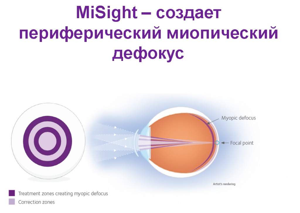 ПОКАЗАНИЯ к ношению линз MiSight® 1 день: у ребенка наблюдаются нарушения зрения в течение года на 0,5 диоптрии и более